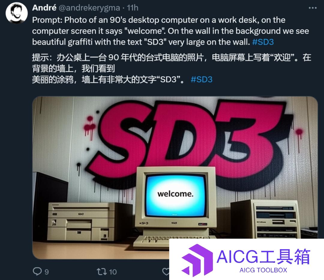 与之前的版本相比,Stable Diffusion 3 生成的图像在创作质量上实现了很大改进,细节更多,与提示词的一致性更高,并且支持多主题提示,要求创建文字的书写效果也更好,更贴近图像的画风。